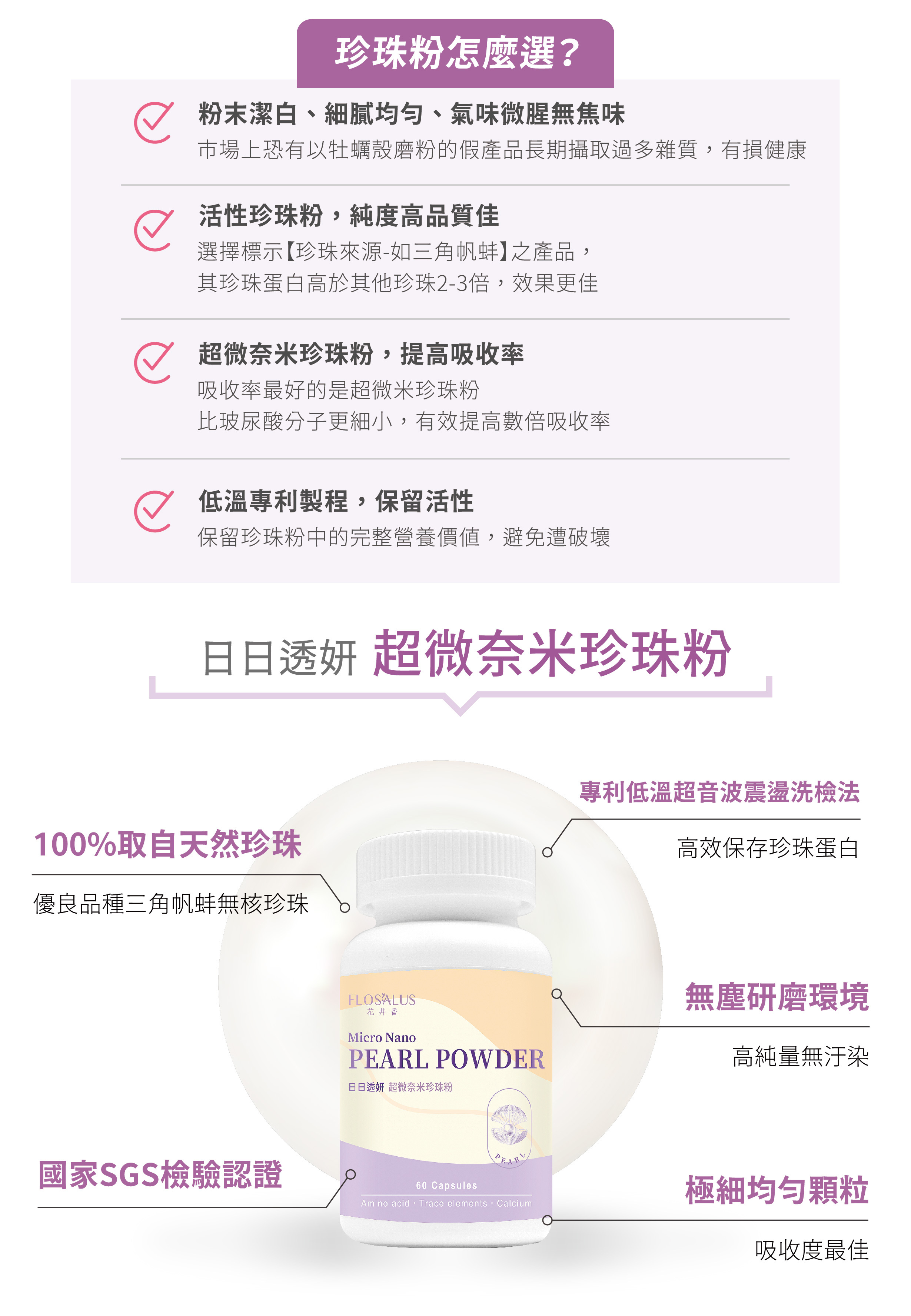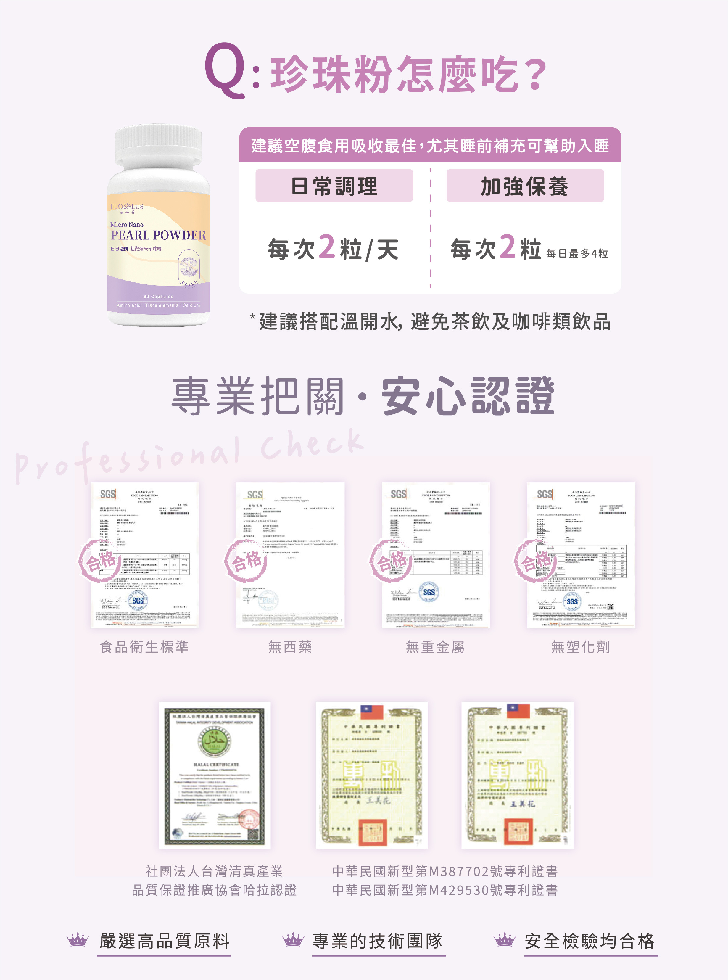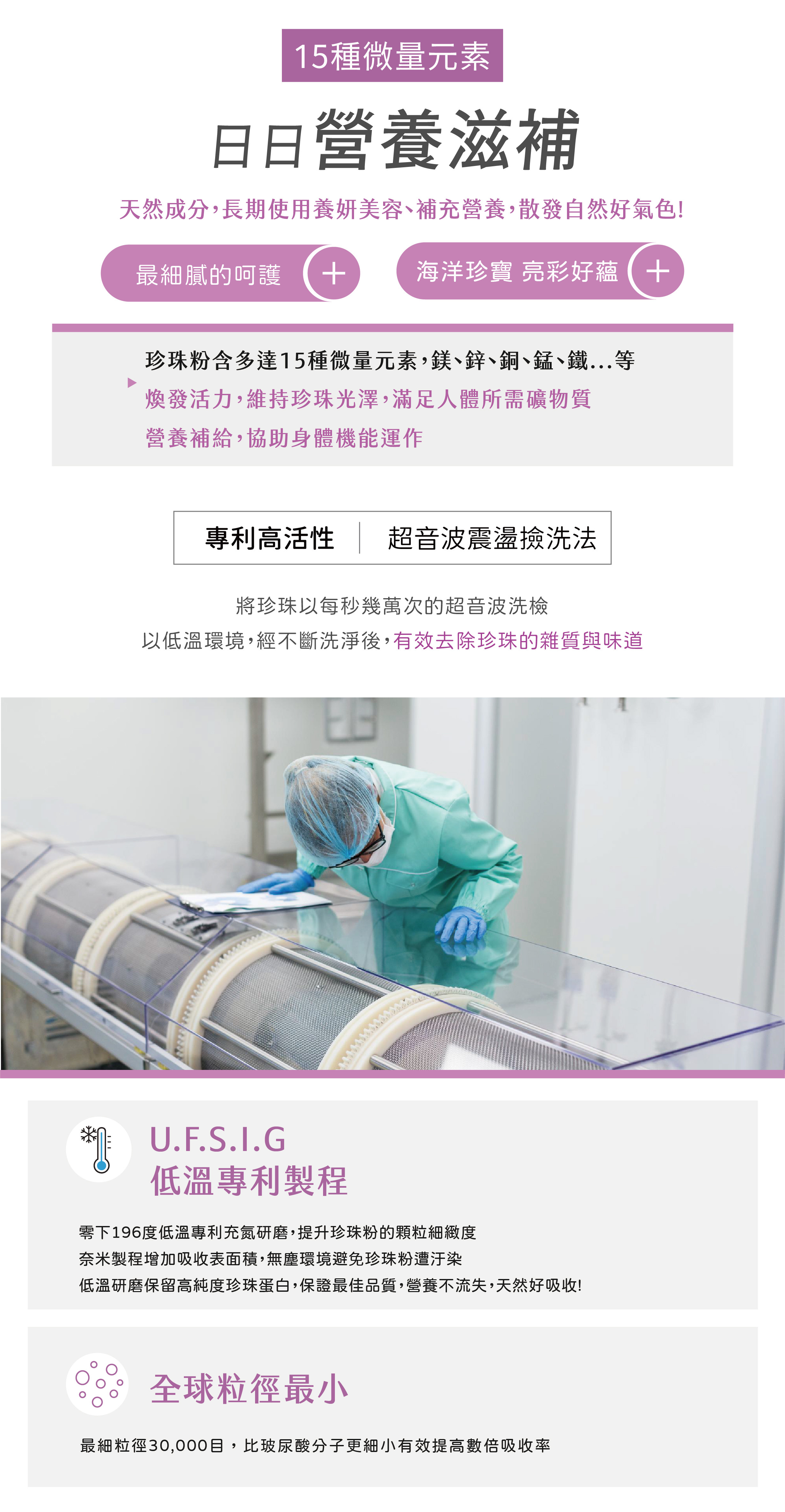 ★專利低溫超音波震盪檢洗法,全球粒徑最細珍珠粉,營養好吸收