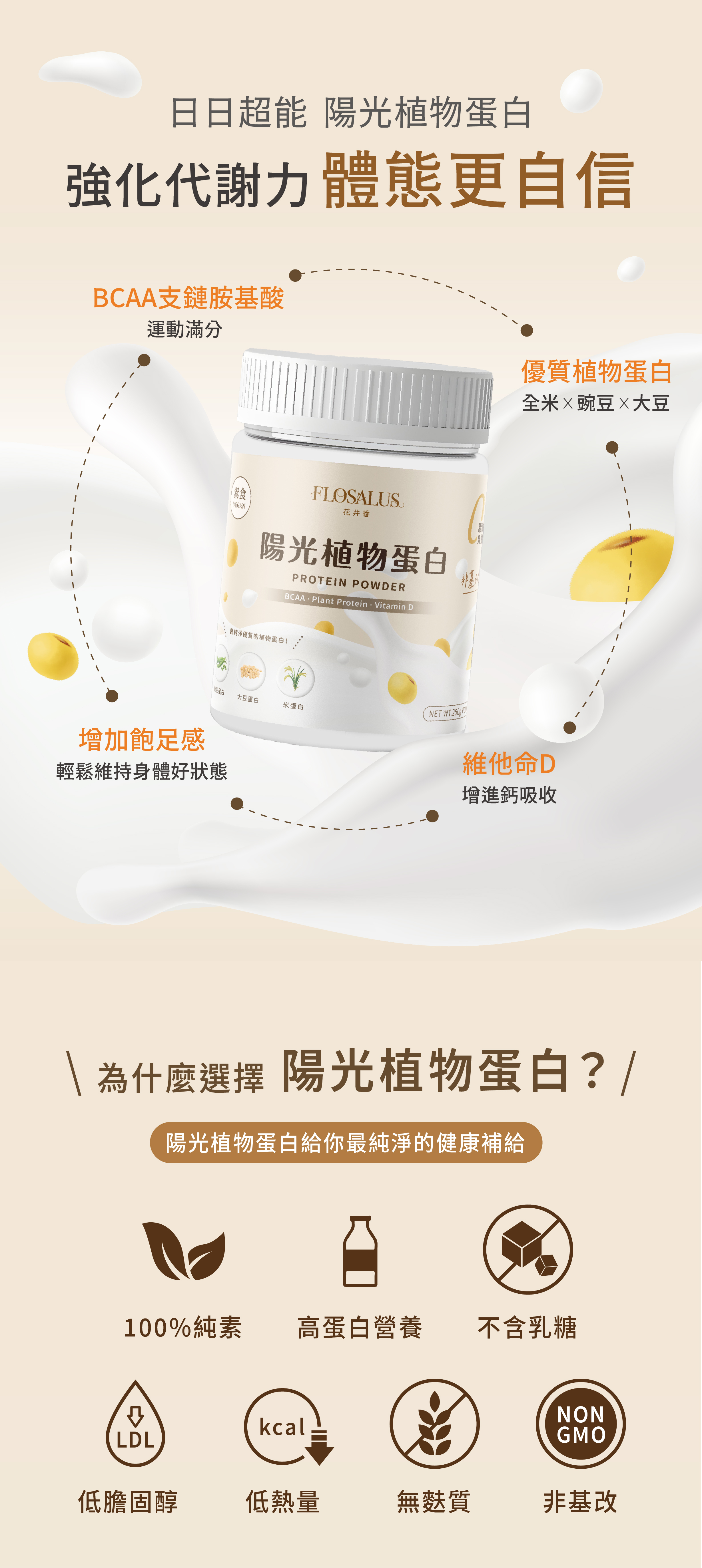 • 最純淨優質的植物蛋白,無膽固醇、無糖、好吸收